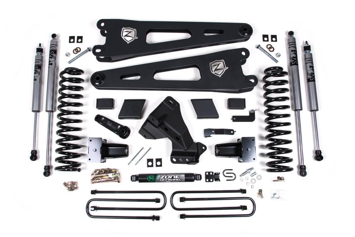 Zone Offroad offers suspension lift kits for the 2020–2021 Ford F350 Super Duty 4WD DRW trucks. Based on the proven platform developed for 2005–2021 Ford Super Duty applications, these kits have been updated specifically for use on dually (DRW) models. The 6-inch lift kit is available for gas applications and includes a replacement HD radius arm to allow clearance for up to 37-inch tires. All Zone lift kits are backed by Factory Protection Plus — a comprehensive extended warranty that includes a 5-year/60,000-mile drivetrain warranty and Zone Offroad's limited lifetime warranty.