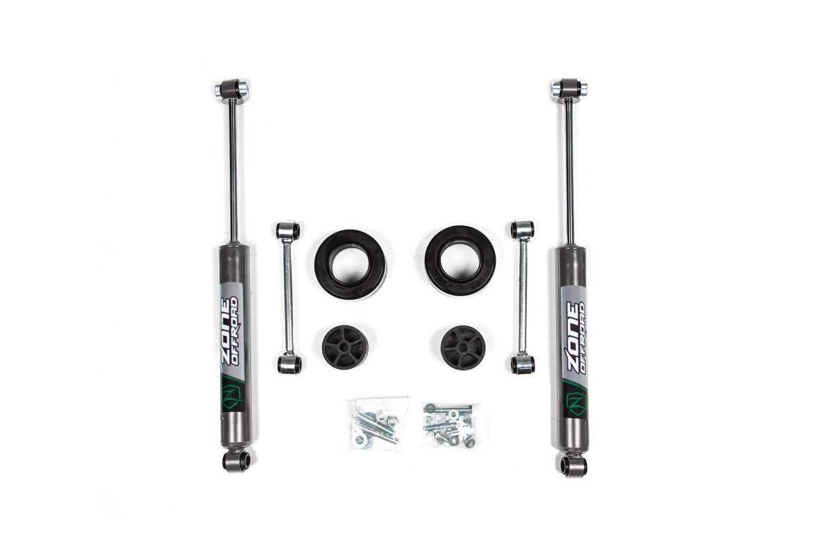 Level out the stance of your Jeep Gladiator JT with this quick and easy to install 2-inch leveling kit from Zone Offroad. The kit includes front polyurethane coil spacers, bump stop extensions, extended front sway bar links, and all necessary hardware. Maintains ride quality while providing clearance for up to 35-inch tires.