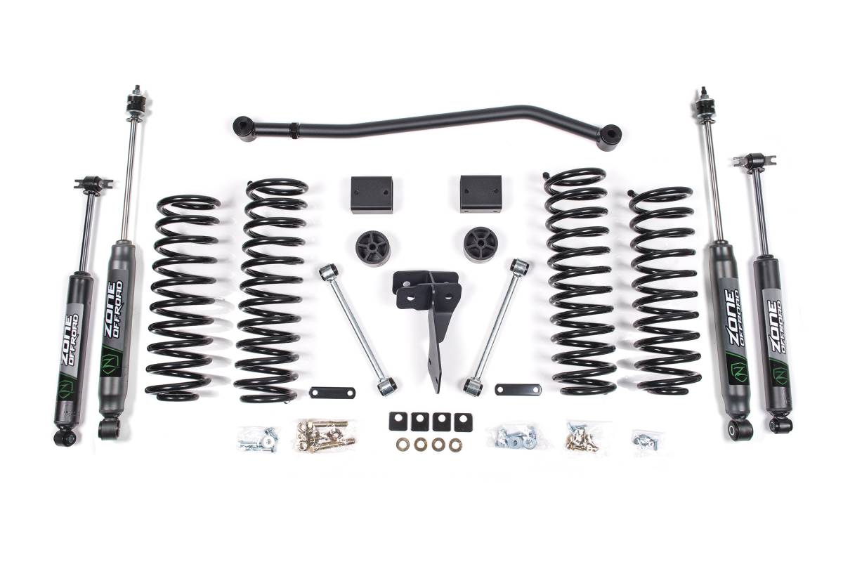 This 4-inch suspension lift kit is designed for 2012–2018 Jeep Wrangler JK 2-Door 4WD vehicles. It provides the ground clearance and wheel travel needed to run 35-inch tires with confidence on and off road.