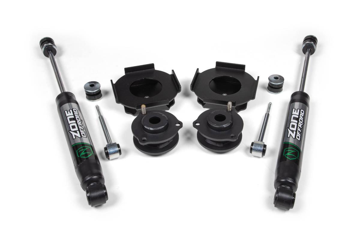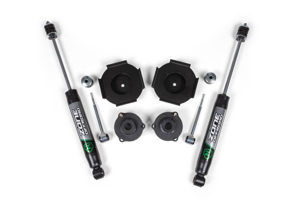 This 3-inch lift kit from Zone Offroad is designed for 2010–2024 Toyota 4Runner 4WD models, improving stance, performance, and off-road capability while maintaining a factory-like ride quality. The kit provides clearance for up to 32-inch tires and is engineered to avoid overextending suspension or driveline angles at full suspension droop. Up front, the kit uses top-mounted steel strut spacers. In the rear, top-mounted coil spacers and rear sway bar links are included. Rear shock options include the Zone Nitro Series or FOX Adventure Series units.