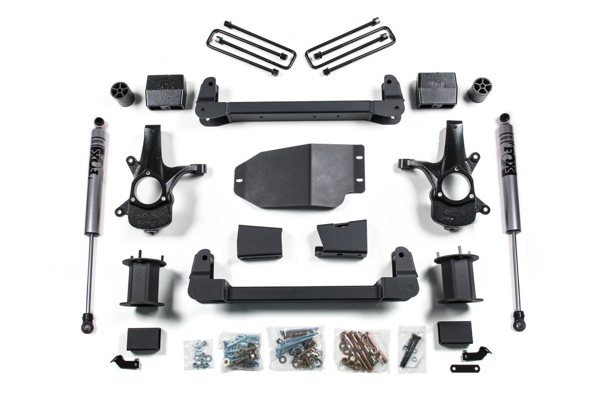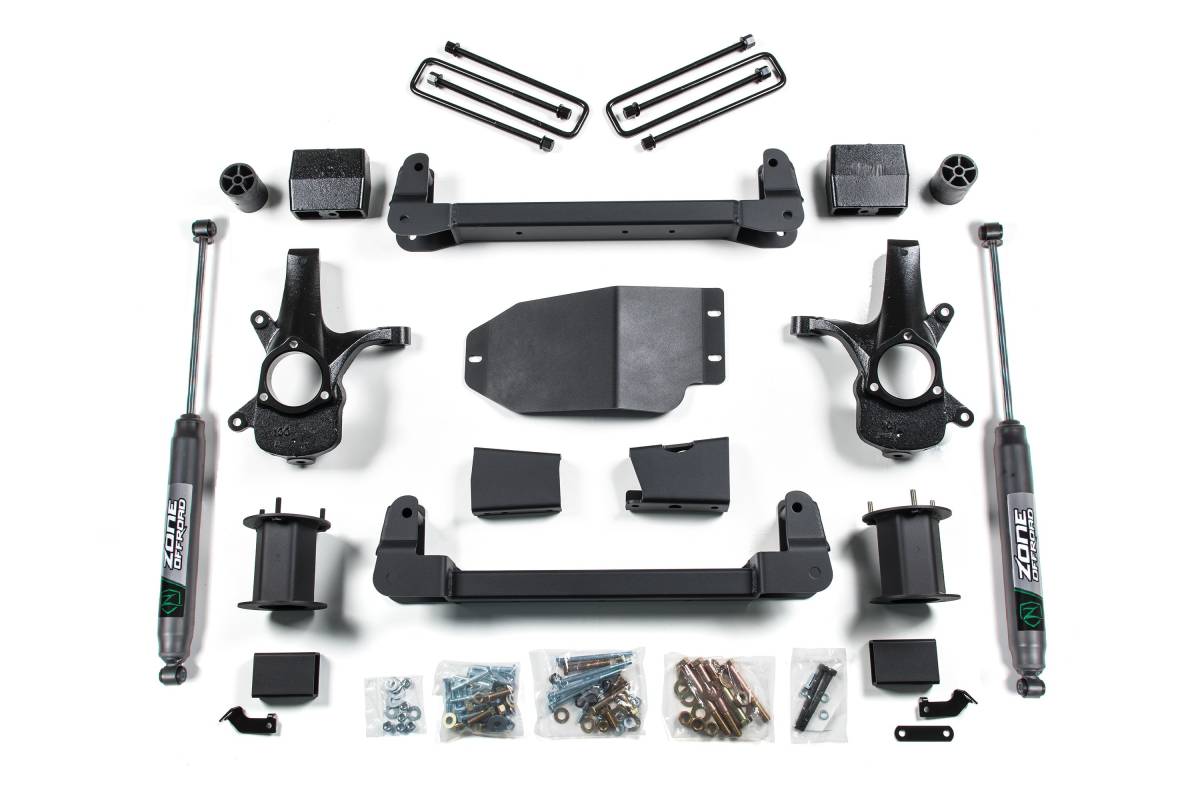 The Zone Offroad 6.5-inch lift kit is engineered for 2007–2013 Chevy Silverado and GMC Sierra 1500 2WD trucks, providing improved stance, ground clearance, and off-road capability with clearance for up to 33-inch tires. The kit takes advantage of Zone's high-clearance design to improve strength and off-road protection while correcting suspension and steering geometry for proper on-road handling.