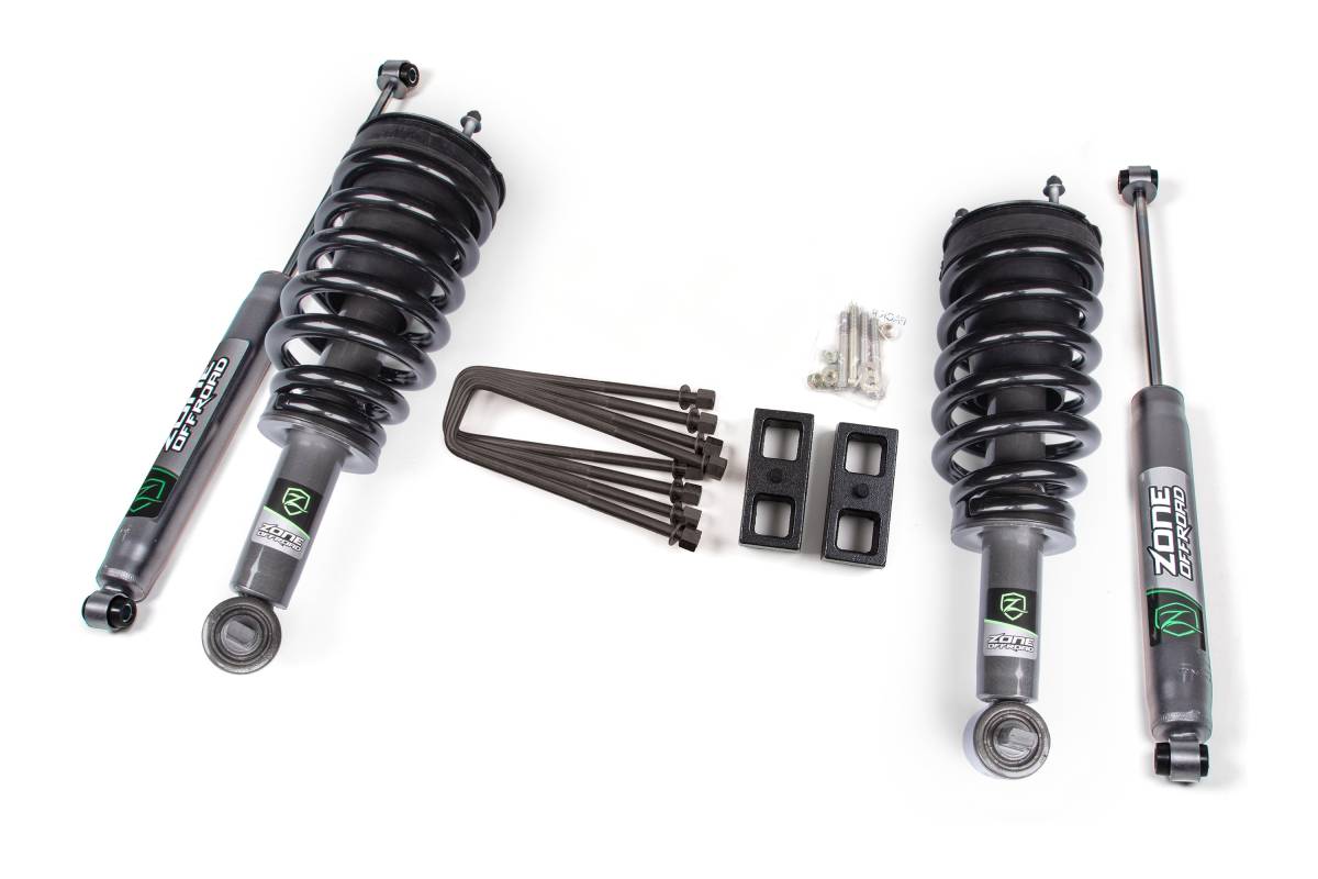 The Zone Offroad 2" Lift Kit for 2007–2018 Chevy Silverado and GMC Sierra 1500 trucks delivers improved stance, performance, and clearance while maintaining factory-like ride quality. Heavy-duty 2" rear lift blocks and U-bolts provide a leveled, durable lift without compromising hauling capability. Designed for everyday drivability and long-lasting reliability, this kit is an upgrade for GM 1500 owners looking to enhance both function and style.