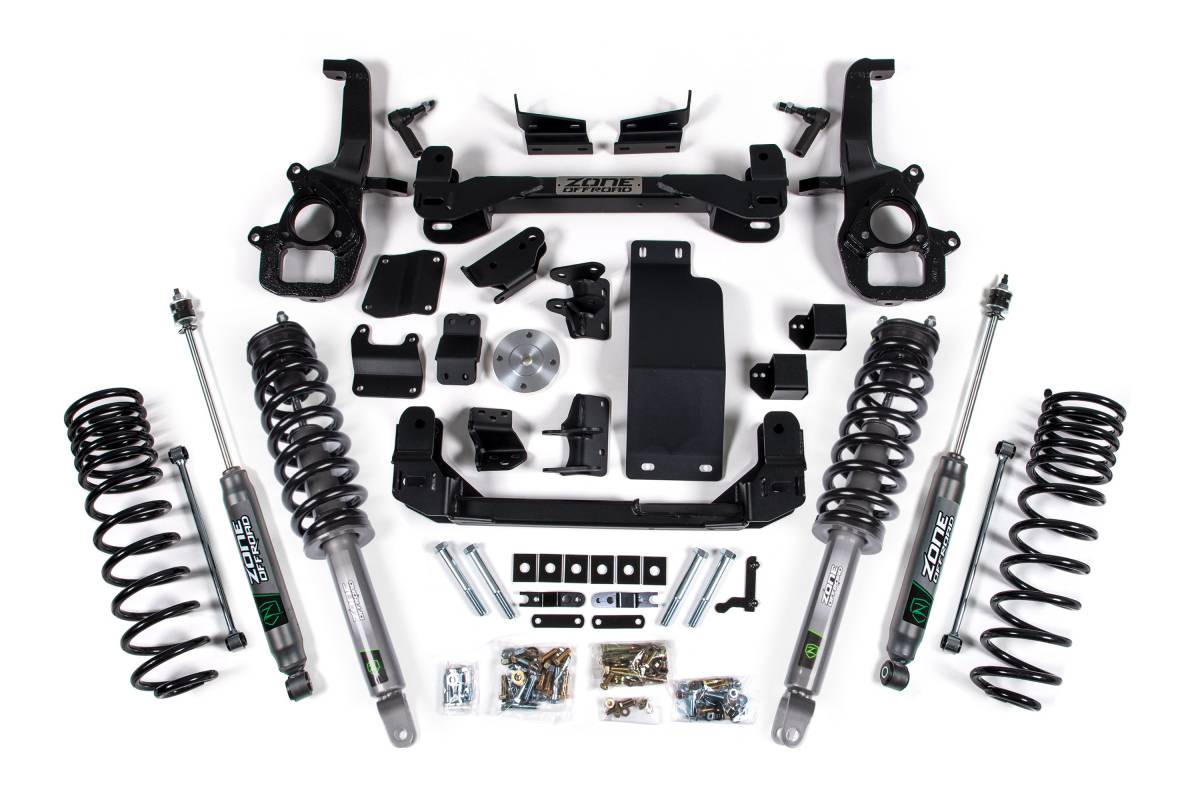 The Zone Offroad 4" IFS Lift System is engineered specifically for the 2019+ RAM 1500 4WD, improving stance and providing clearance for up to 35" tires. Built in the USA to high quality standards, this kit is designed to maintain on-road handling while enhancing off-road capability. All Zone Offroad lift kits are backed by Factory Protection Plus, which includes Zone Offroad's Limited Lifetime Warranty, ESC system compatibility, and a 5-year/100,000-mile drivetrain warranty.