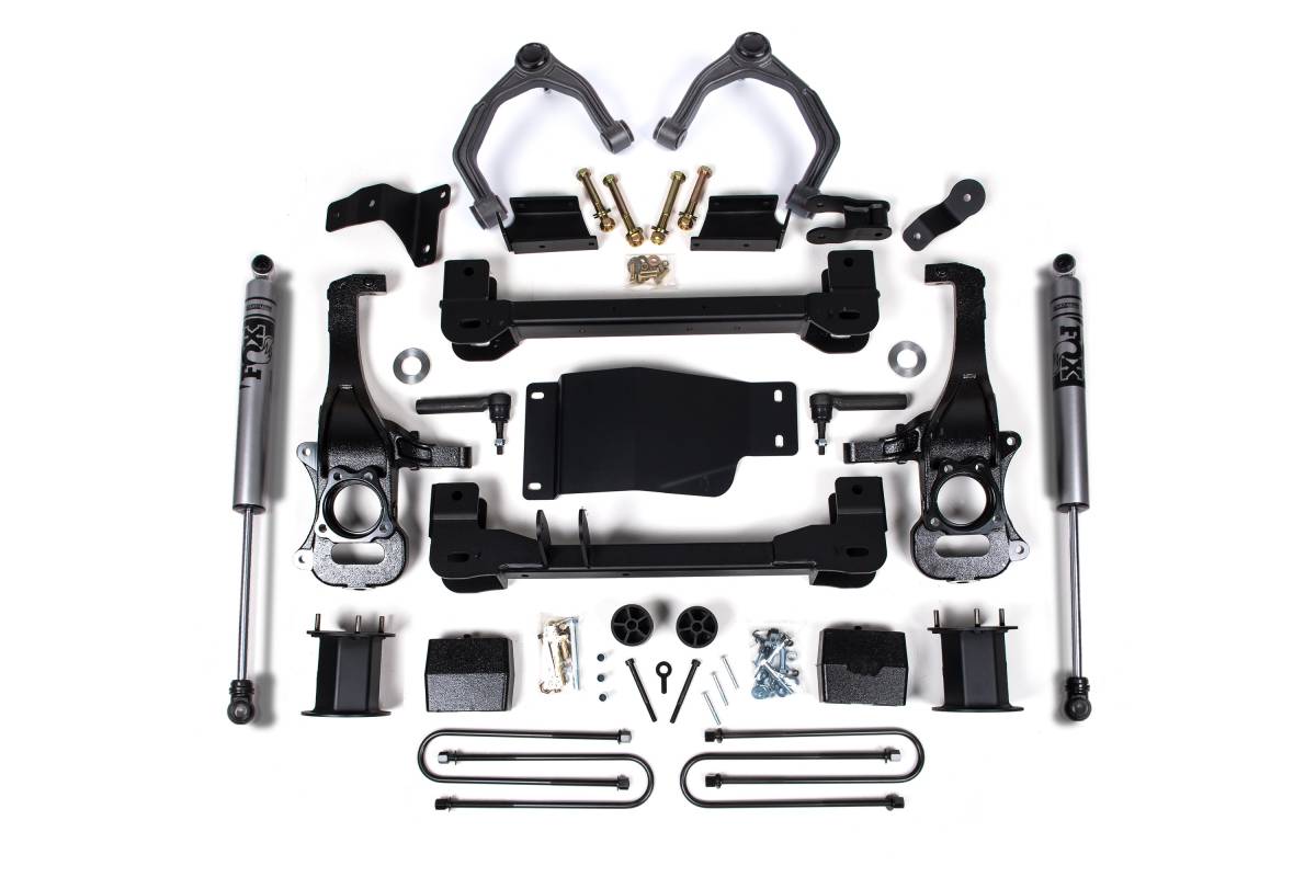 This 6" lift kit from Zone Offroad is designed for the 2025–2026 Chevy Silverado 1500 and GMC Sierra 1500 4WD. The kit includes high-strength crossmembers, steering knuckles, differential relocation brackets, and Adventure Series upper control arms to improve suspension geometry and provide clearance for up to 35" tires. Multiple front and rear shock configurations are available to suit different ride quality and performance preferences.